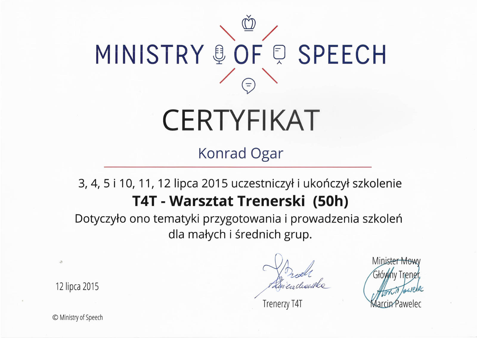 Od lat prowadzę szkolenia oraz sam się doszkalam, aby być jeszcze lepszym szkoleniowcem. Jednak nie zdobywałem całego doświadczenia w szkoleniach samodzielnie. Po samodzielnym przeprowadzeniu kilku szkoleń z pozytywnym skutkiem i za sprawą spotkań networkingowych postanowiłem rozwijać się jako trener. Z tego powodu na pewnym etapie sięgnąłem po poradę u specjalistów od organizowania szkoleń i wystąpień publicznych. Efektem tej współpracy było odbycie szkolenia z wystąpień publicznych oraz warsztatu dla trenerów, którego głównym celem było nauczyć trenera prawidłowo przygotowywać szkolenia i skutecznej metody przekazywania wiedzy.